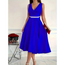 Deze veelzijdige jurk combineert elegantie, comfort en een flatterende pasvorm. Met een diepe V-halslijn en getailleerde taille creëert hij een prachtig silhouet dat geschikt is voor elke gelegenheid. Wordt geleverd met een riem om je figuur te accentueren. Het is een tijdloos kledingstuk dat in elke garderobe thuishoort.